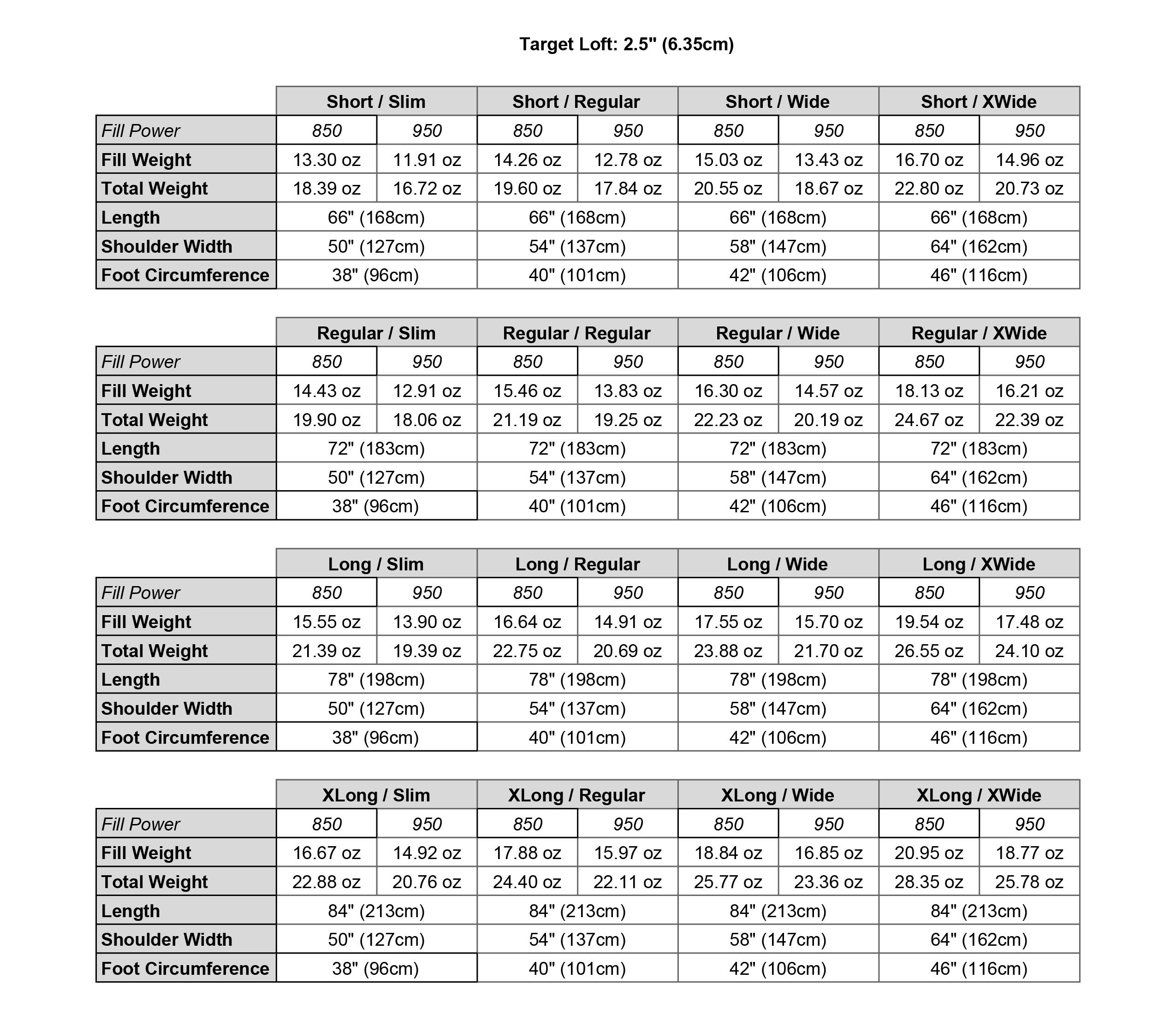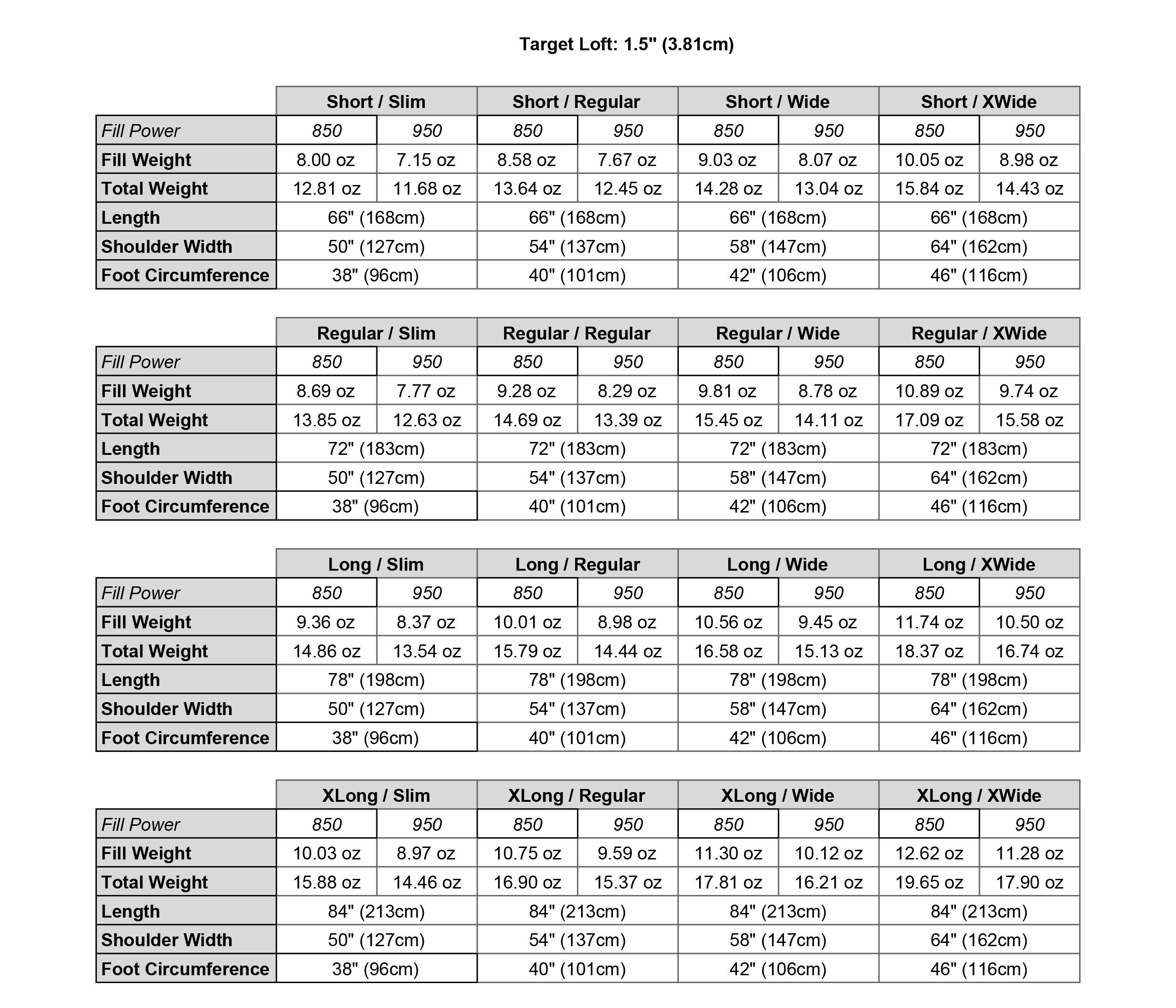 - Sewn-closed footbox. No zippers and no cinches. Great for sleepers with cold feet.