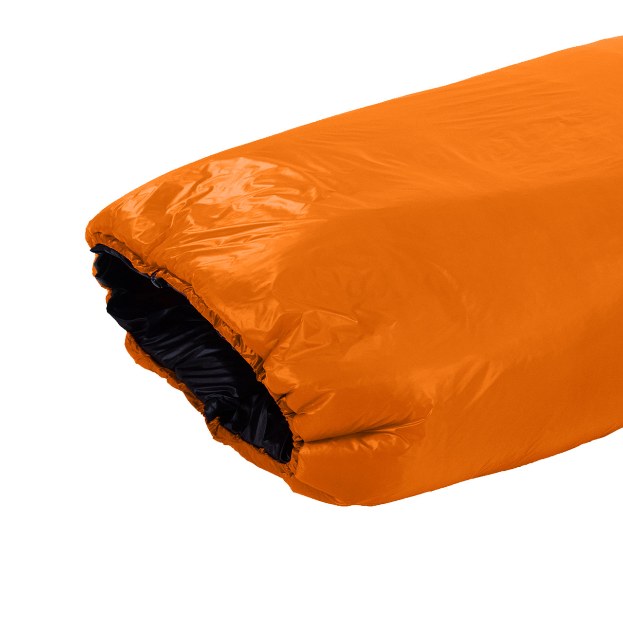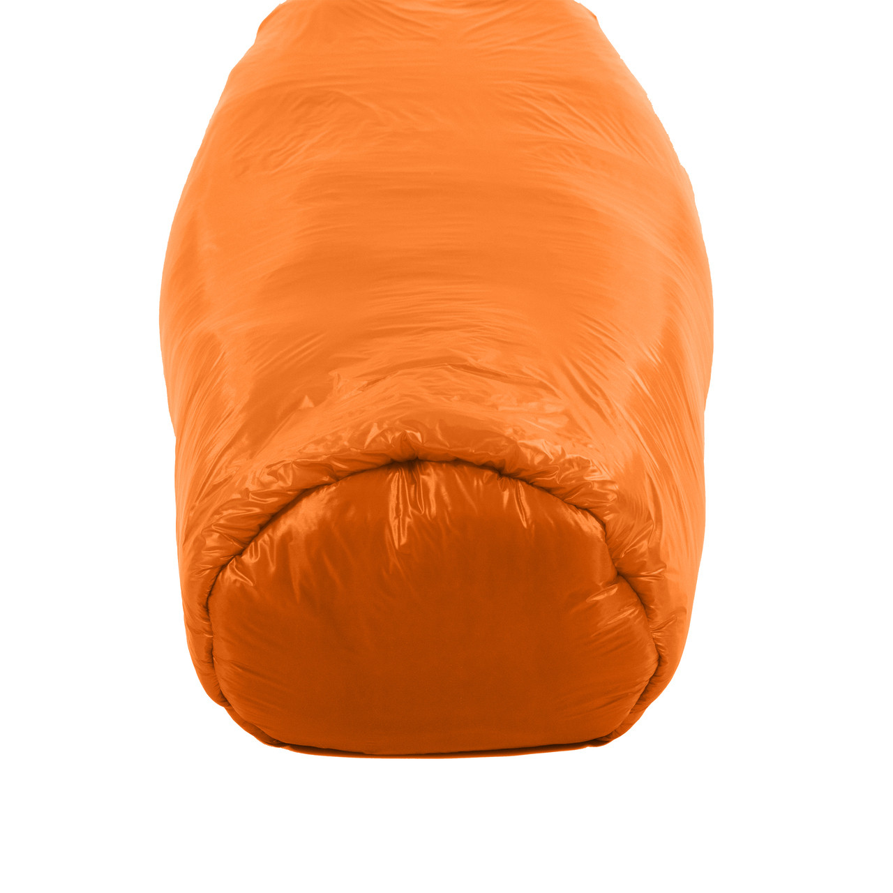 The Enigma APEX is a quilt, not a sleeping bag, which means it's designed to be used with a sleeping pad to provide insulation underneath you, between you and the ground. The Enigma APEX doesn't have a zipper or a built-in hood, saving weight and space in your pack.