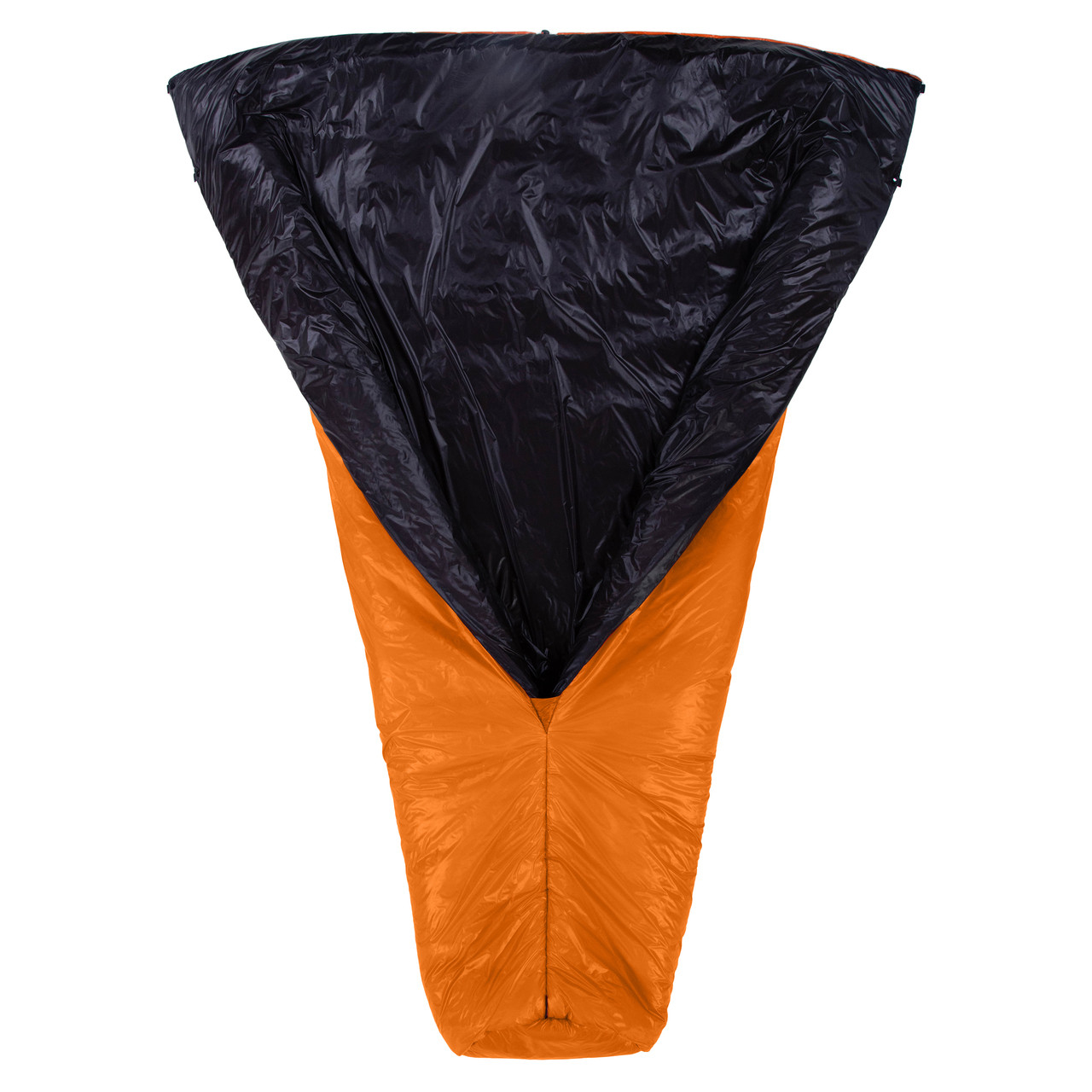 The Enigma APEX is the synthetic version of the Enigma, pairing the versatility of a quilt with a complete, closed footbox. It's the perfect quilt for folks who always get cold feet, or those who want a simple, no-fuss design. The Enigma APEX has all the features of the down version without the need for baffles. APEX Insulation has the ability to dry faster than down in wet-out conditions, and is simpler than down to maintain.