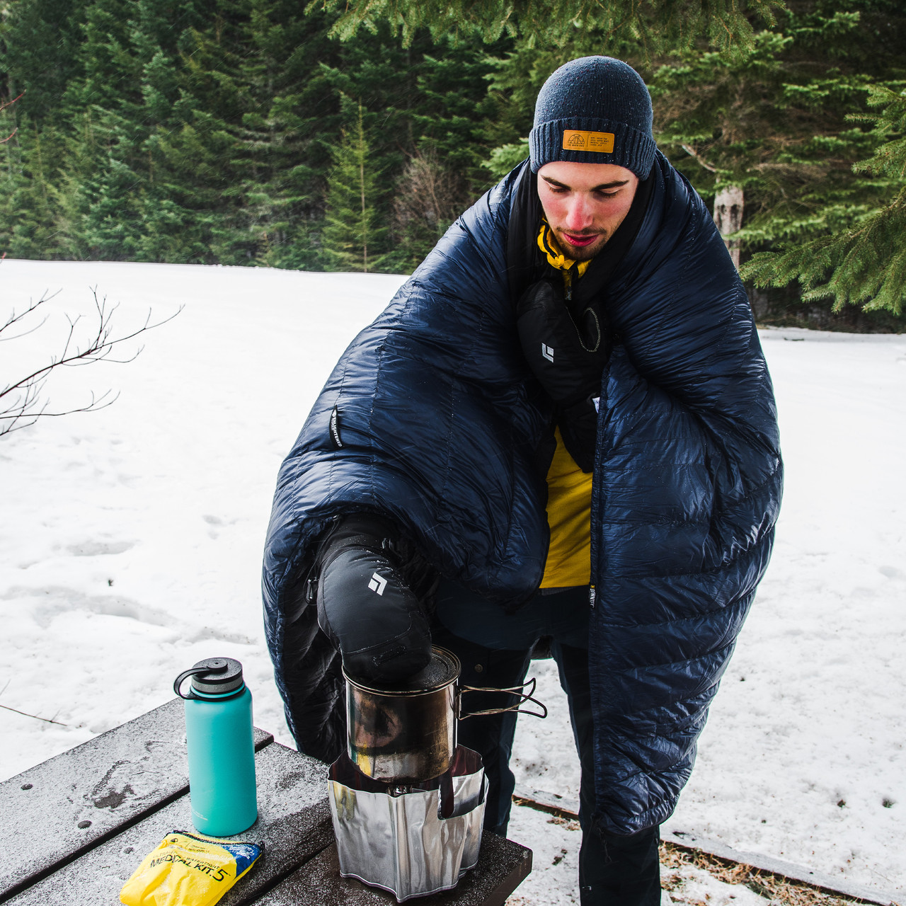 - Full-length zipper and shock cord footbox allow for use as a quilt or sleeping bag.