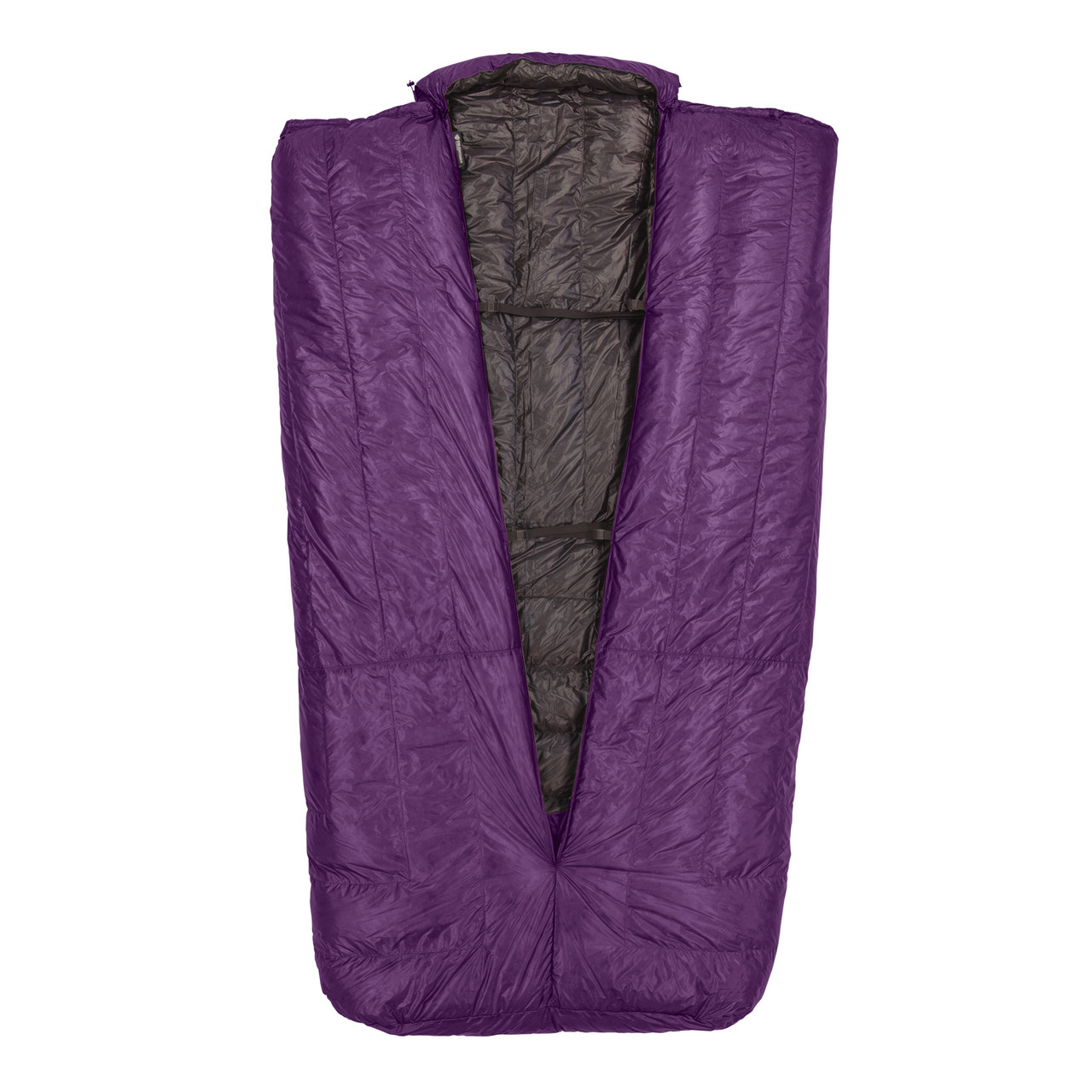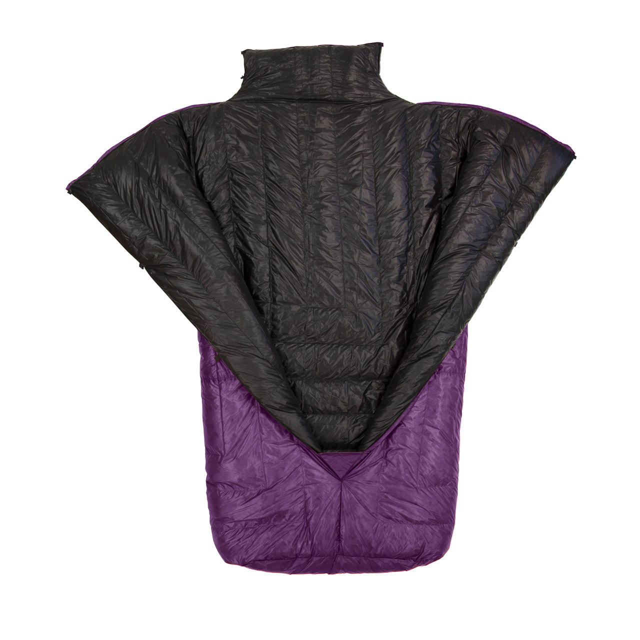The Accomplice is a sleeping quilt, not a sleeping bag, which means it's designed to be used with a sleeping pad to provide insulation underneath you, between you and the ground. The Accomplice doesn't have zippers or built-in hoods, saving weight and space in your pack.