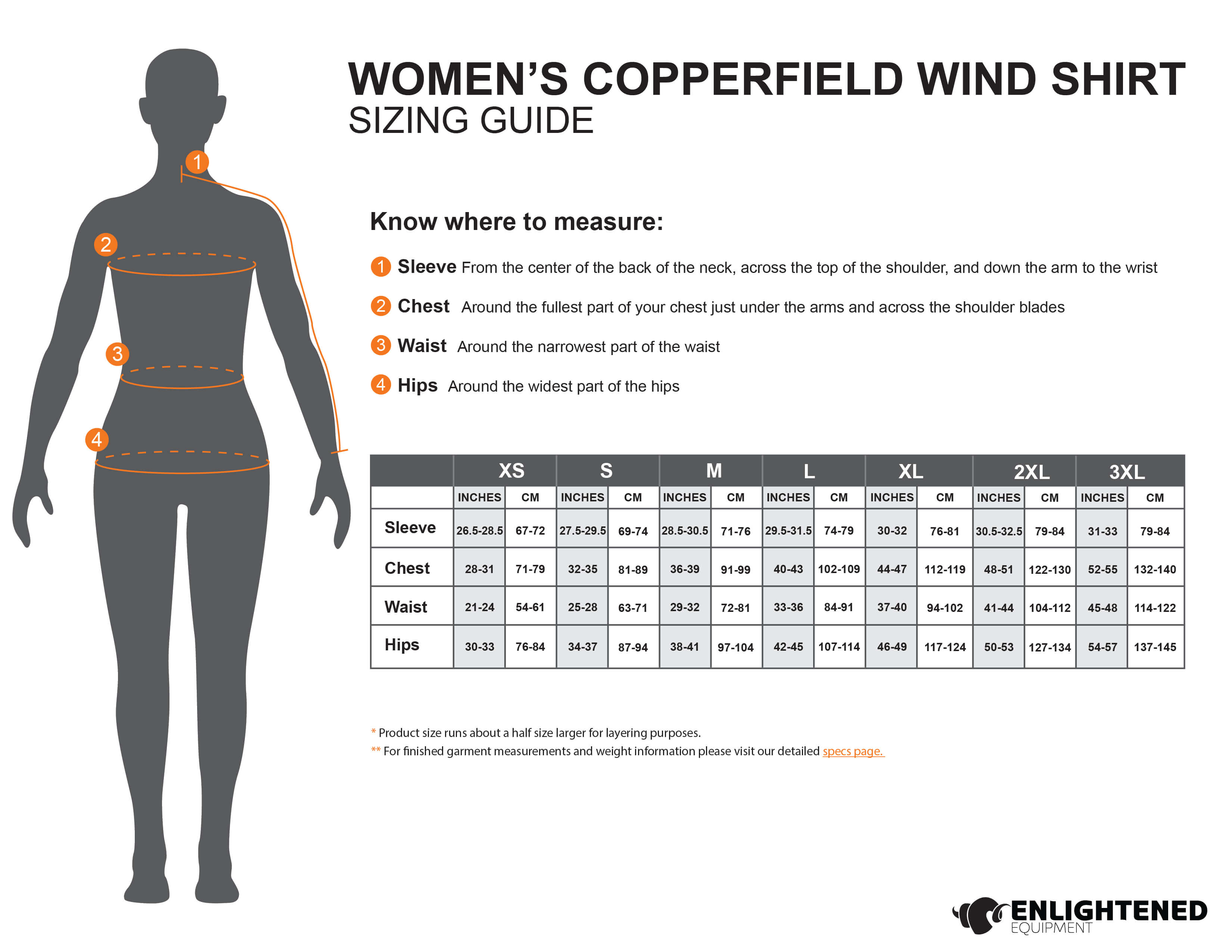 The Copperfield Wind Shirt is so light it will disappear into your pack or pocket. Great for using alone or pairing with an insulating layer when you need to manage the wind and trap warmth that would otherwise be lost. Whether on foot, wheels, or water, the Copperfield will provide a high level of value to anyone who spends time outdoors. With a weight starting at 2.15 oz (61g), there’s no reason not to take it.